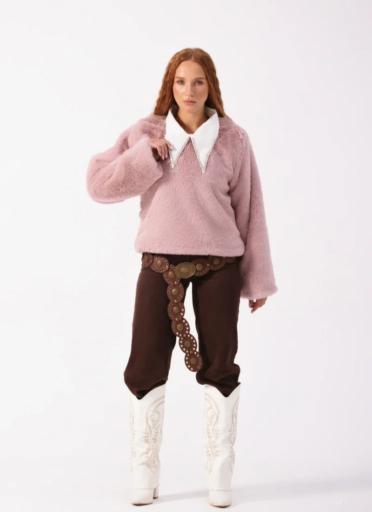 Wool & Faux Fur Sweater Dusty Pink