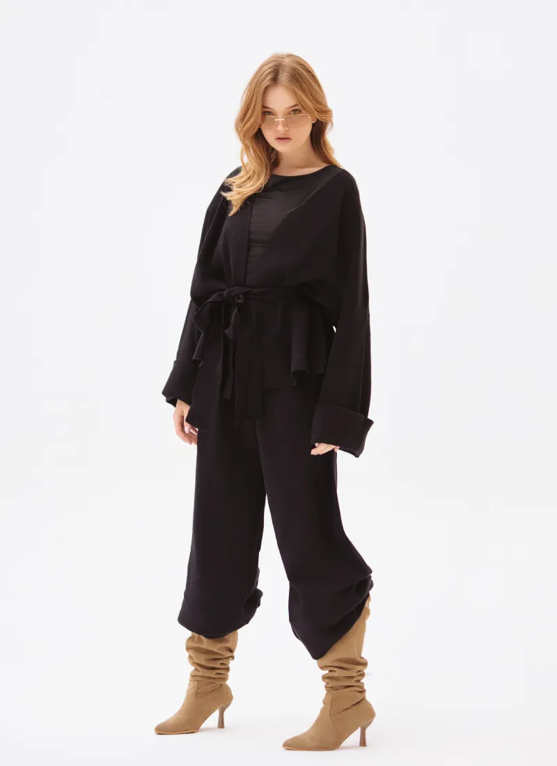 Luxury winter set made of 100% high-quality wool, providing warmth and elegance throughout the day. The design features refined details and natural wooden buttons that add a classic, luxurious touch.