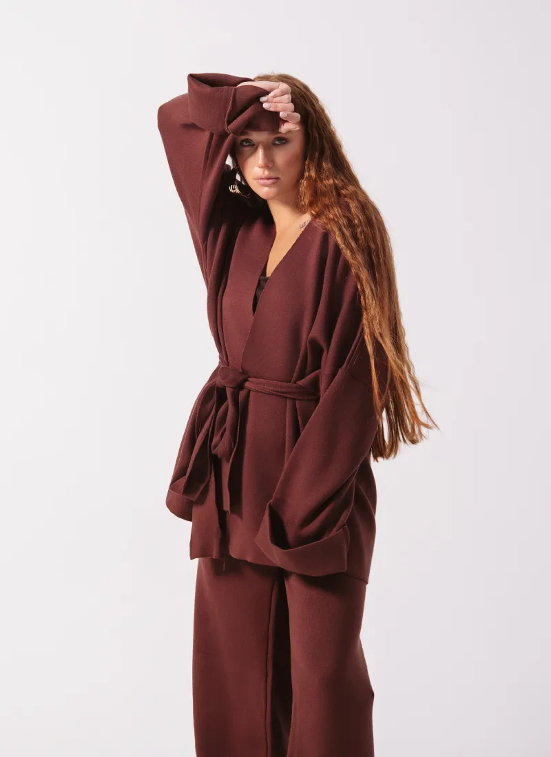 Luxury winter set made of 100% high-quality wool, providing warmth and elegance throughout the day. The design features refined details and natural wooden buttons that add a classic, luxurious touch.