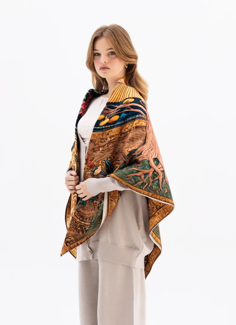 This luxurious winter shawl wraps you in warmth and effortless elegance. With its generous 140×140 cm size, it offers full coverage and endless styling options. Crafted from premium heavy wool, it delivers exceptional insulation for the coldest days while maintaining a soft, comfortable feel on the skin. The rich, artistic patterns add a sophisticated touch, and the refined stitching with clean edges reflects high-quality craftsmanship. Whether draped over the shoulders or styled around the neck, this shawl elevates any outfit with ease. If you’re looking for a piece that blends practicality with luxury, this winter shawl is the perfect addition to enhance your look and keep you truly warm.