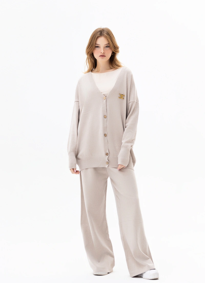 Luxury winter set made of 100% high-quality wool, providing warmth and elegance throughout the day. The design features refined details and natural wooden buttons that add a classic, luxurious touch.