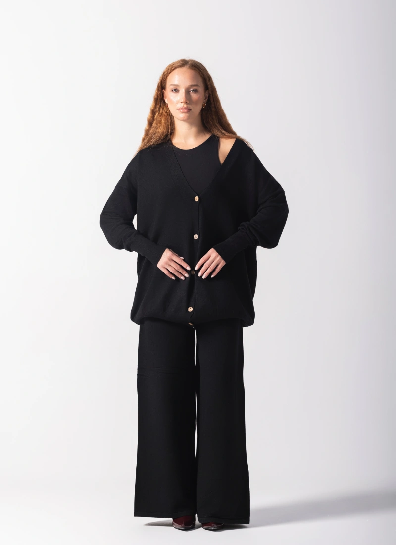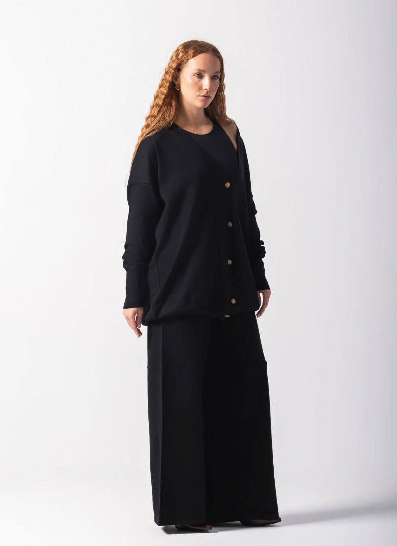 Luxury winter set made of 100% high-quality wool, providing warmth and elegance throughout the day. The design features refined details and natural wooden buttons that add a classic, luxurious touch.