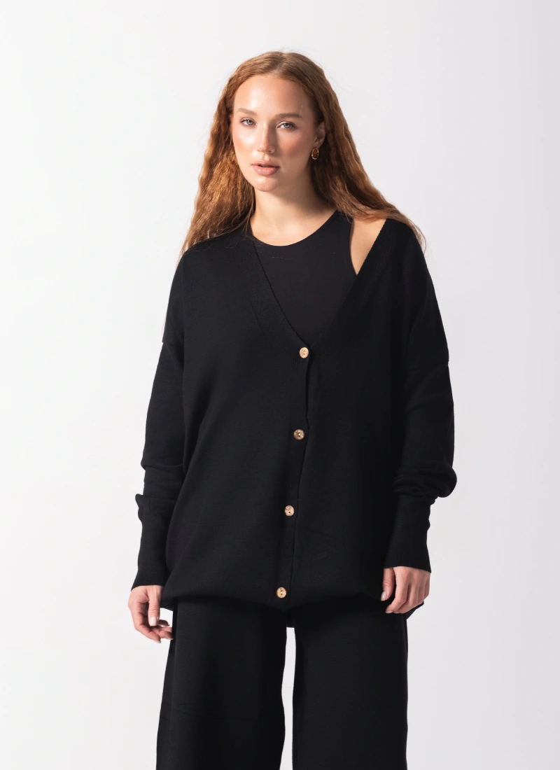 - Details: Natural wooden buttons that add a warm and distinctive style