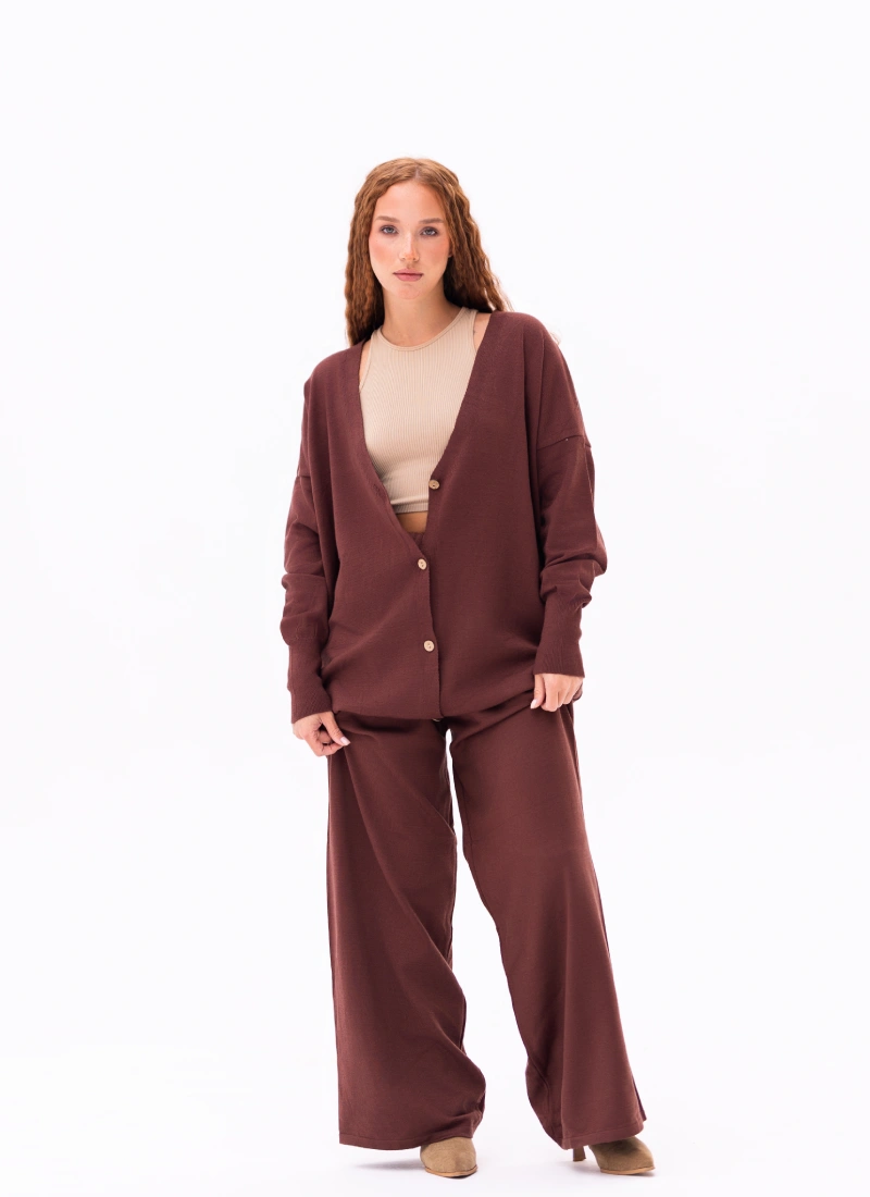 Luxury winter set made of 100% high-quality wool, providing warmth and elegance throughout the day. The design features refined details and natural wooden buttons that add a classic, luxurious touch.