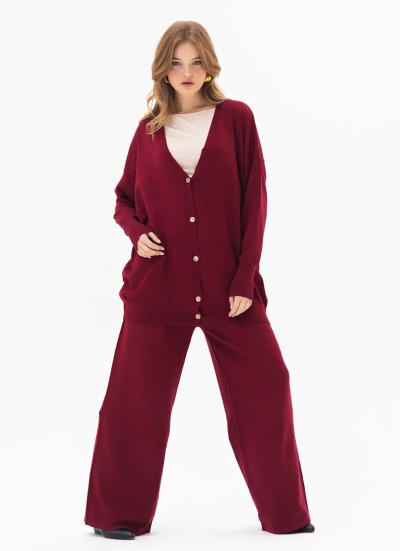 Luxury winter set made of 100% high-quality wool, providing warmth and elegance throughout the day. The design features refined details and natural wooden buttons that add a classic, luxurious touch.